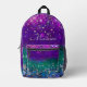 Sac À Dos Imprimé Joli bleu violet ombre parties scintillant monogra