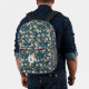 Ce joli sac à dos élégant présente un motif floral en or, turquoise, rose vif et blanc cassé sur un arrière - plan de couleur personnalisé (illustré en bleu marine foncé). Un modèle de texte monogramme est inclus pour une personnalisation simple - customisez-le ou retirez le modèle et le cercle si aucun monogramme n'est désiré. Idéal pour retourner à l'école !