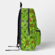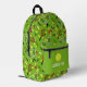 Sac à dos vert citron coloré à motifs de raquettes de tennis, balles de tennis et fraises. La zone de poche avant dispose d'un texte personnalisable pour ajouter votre nom ou vos initiales