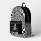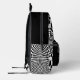 Motif géométrique noir et blanc de carrés et rectangles avec poulpe de calmar monstre et inscription "KRAKEN".