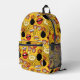 Ajoutez votre propre nom ou un autre texte pour customiser ce amusant sac à dos rétro motif de bombes, lèvres, bulles de discours et lunettes de soleil dans les tons lumineux de rouge et d'or. Le texte du motif dit déjà 'WTF' et 'Boom'. Recherchez ID553 pour voir d'autres produits avec cette conception.