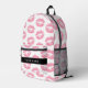 Sac À Dos Imprimé Lèvres Roses, Baiser, Baguette à lèvres, Votre Nom