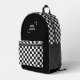 Le sac à dos imprimé en noir blanc Checkerboard Check Motif Logo comporte un motif rétro en noir et blanc avec votre logo d'entreprise personnalisé. Parfait pour les cadeaux d'entreprise, l'école, les sports, la salle de gym, les voyages et plus encore. Conçu par ©2025 Evco Studio www.zazzle.com/store/evcostudio
