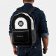Personnalisez facilement ce sac à dos professionnel en ajoutant le logo de votre entreprise et un texte personnalisé. Vous pouvez ajouter nom d'entreprise, slogan, médias sociaux, site Web ou toute information supplémentaire, ou le supprimer. Un design simple et moderne en noir et blanc avec une police sans serif claire, pour un look professionnel et pointu, parfait comme cadeau promotionnel pour employés, clients, fêtes d'entreprise, salon. Le sac à dos peut être customisé dans n'importe quelle couleur et n'importe quelle police. Pas de minimum. Bleu de marine classique | Logo d'entreprise personnalisé et texte Cabinet moderne imprimé Sac à dos personnalisé Logo d'employé, texte, slogan, site Web Sac à dos imprimé