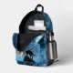 Abstrait géométrique silhouette brillante bleu loup hurlant. Personnalisez avec votre nom personnalisé initial. Sacoche d'accessoires de mode cool pour lui. Créez un sac à dos unique et personnalisé avec une touche personnalisée !