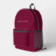 Personalized Trendy burgundy cherry wine red backpack featuring modern custom text. Add your own photo, illustration or any graphic design element, or leave this elegant and minimal aesthetic. Any font, any color, no minimum.
