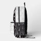Minuit à Paris Tour Eiffel Sac à dos imprimé Chaîne hors du temps avec ce sac à dos monochrome, orné d'élégantes silhouettes de la Tour Eiffel qui évoquent le romantisme de Paris après la tombée de la nuit. Le corps principal noir et les poches latérales en maille offrent un look élégant et moderne, tandis que le panneau avant ajoute un contraste avec un arrière - plan blanc avec des motifs de tour délicats et un script cursif pour une touche de flair artistique. Fini avec des fermetures à glissière noires et une poignée robuste, ce sac à dos est parfait pour les rêveurs, les voyageurs et tous ceux qui portent un peu de magie parisienne où qu'ils aillent.