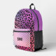 Ce modèle amusant de sac à dos pour enfants présente des teintes de rose, violet, noir et blanc avec un mélange de léopard et de motifs chèques. Votre propre monogramme est à l'avant. C'est un design moderne amusant pour tous les âges - enfants, tweens, ados et même adultes !