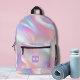 Les Backpacks Monogramme Pink Bleu Moderne sont dotés de votre nom personnalisé, monogramme ou parties génitales dans une typographie de script simple sur un arrière - plan tourbillon rose, bleu, menthe et pêche iridescente moderne. Parfait pour retourner à l'école, les sports, la salle de sport et plus encore. Conçu par ©Evco Studio www.zazzle.com/store/evcostudio