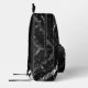 Sac à dos Monogramme abstrait en argent faux brillant. Personnalisez le sac Accessoire avec votre initiale et votre nom personnalisés. Un cadeau abstrait en noir et blanc pour elle. Composition numérique d'une photo d'étincelles et photo d'une belle pierre noire abstraite. Nous utilisons des photos de mousseux, pas de parties scintillant réelle !