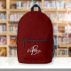 Ce sac à dos personnalisé est doté d'un monogramme et d'un prénom en écriture moderne gris et blanc sur un arrière - plan rouge bordeaux élégant.
