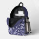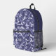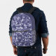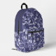 Ce sac à dos est doté d'un charmant motif de style camo dans les tons bleu, gris bleu et blanc cassé. Votre monogramme à trois lettres est en blanc dans une bannière de cercle bleu assortie au centre de la poche. Le dessus du sac est assorti au bleu solide, ce qui fait un beau contraste avec le motif.