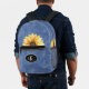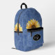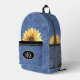 Montrez votre belle personnalité avec ce sac à dos bleu à l'allure denim avec des tournesols jaunes et vos initiales monogrammes. Ce sac est assez spacieux pour tout ce que vous devez emporter avec vous, et peut être utilisé pour l'ordinateur, les livres, la nourriture, les voyages de nuit, les jouets, les fournitures pour chien, les accessoires de beauté - la liste ne se termine jamais. Super idée cadeau.