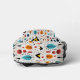 Il y a un motif feuille de style boho amusant sur ce sac qui est attrayant pour les enfants et les adultes. Les couleurs utilisées incluent le bleu, l'or, l'orange et la marine foncée sur un arrière - plan blanc. Au centre se trouve votre triple monogramme en noir, qui est placé sur une bannière ovale bordée de noir et d'or. Coloré!