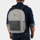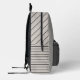 Motif taupe neutre, beige et gris fusain avec rayures et solides, ce sac à dos est un choix de bon goût pour l'école, le bureau, les voyages et plus encore. Un design monogramme élégant et unique affiche l'initiale de votre prénom dans une police serif simple et une police calligraphie élégante dans l'arrière - plan. Votre nom est affiché sous votre monogramme initial dans cette conception personnalisée de typographie unique. Les trois éléments se fondent dans une harmonie sophistiquée et créent votre propre logo de marque personnelle. Personnalisez avec votre nom et votre monogramme.