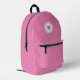 Le sac à dos rose cool est muni d'un monogramme noir gras en cercle blanc avec une bordure rose étroite et une fine bague blanche extérieure. Ajoutez votre initiale dans la barre latérale.