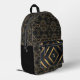Noir élégant et moderne avec des formes or sac à dos monogrammed.