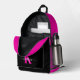 Ce sac à dos noir simple et élégant avec votre prénom dans une police de script tendance en blanc et votre première initiale dans une police casquette moderne en rose chaud est parfait pour vous. C'est design, tendance et pourtant très classique. Il sera fabuleux pour l'école, la salle de sport, les sorties, les randonnées, le shopping, le vélo, etc.