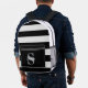 Sac À Dos Imprimé Monogramme rayé noir et blanc Nom initial