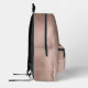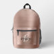 Ce sac à dos personnalisé est doté d'un monogramme et d'un prénom en écriture moderne noir et blanc sur un élégant arrière - plan en métal brossé en or rose.