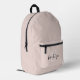 Ce sac à dos personnalisé est doté d'un monogramme et d'un prénom en écriture moderne noir et blanc sur un arrière - plan rose vif tendance.