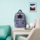 A bold and sophisticated Printed Backpack featuring dramatic dusty blue and grey floral illustrations against a stark black background. The crisp white typography and classic layout set an elegant, moody tone. Perfect for a formal evening or a sophisticated wedding.