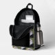 Voyagez avec ce sac à dos élégant et tendance qui présente l'image d'une tête d'aigle à tête blanche sur un arrière - plan vert et imprimé dans un motif extensible sur le côté avant seulement. Les côtés et la poche zippée sont noirs.