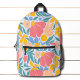 Les sacs à dos de Motif de fleurs florales modernes et colorées présentent un motif floral coloré en jaune, pêche, rose, bleu, orange, vert et violet. Parfait pour retourner à l'école, les sports, la salle de sport, les voyages et plus encore. Conçu par ©Evco Studio www.zazzle.com/store/evcostudio