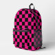 à damiers carré chaud rose noir géométrie Imprimé sac à dos. Sacoche d'accessoires de mode cool pour elle. Cool retro à damiers motif carré géométrique . Vérificateur moderne vintage carrelage noir et rose chaud. Créez un sac à dos unique et personnalisé avec une touche personnalisée !
