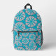 Sac à dos bleu Aqua avec design de coquilles de buccins. La jolie coquille de bulk éclair forme des dessins circulaires et est modelée sur une couleur bleu marine. Ce pack à thème marin est parfait pour les enfants ou les adultes qui apprécient l'océan et ses créatures qui habitent les coquillages.