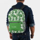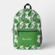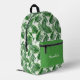Un sac à dos personnalisé motif vert vert et blanc de feuilles tropicales est entièrement personnalisable. De grands feuilles tropicaux, verts et blancs, audacieux se superposent les uns aux autres, accompagnés d'un arrière - plan blanc au décor subtil de carrelage peint.