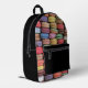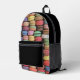 Ces confections françaises sucrées à base de meringue sont remplies d'un centre savoureux pour créer un sandwich aux biscuits délicieusement sucrés. Cet arc-en-ciel empilé de couleurs signifie différentes friandises de saveur! Cette image a une légère impression "peinte" quand vous regardez de près. Magnifique Macaron Français Coloré Motif de biscuits imprimé sac à dos. Idéal pour retourner à l'école pour vos enfants, ou pour une appréciation de l'enseignant ou un cadeau de vacances.