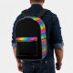 Un sac à dos personnalisable avec toutes les couleurs de l'arc-en-ciel et rose! Ce motif rayé coloré peut être déplacé, supprimé et ajusté en taille sur n'importe quel panneau. J'ai choisi une couleur arrière - plan noire, mais vous pouvez choisir n'importe quelle couleur que vous préférez pour faire ce sac à dos juste pour vous ou comme un cadeau. Vous pouvez également ajouter un nom, un monogramme ou un autre texte. Idéal pour l'école, les voyages et plus encore !
