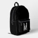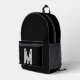 Sac à dos imprimé avec arrière - plan solide noir et police blanche audacieuse Design simple et tendance par Alma Wad. Personnalisez-le avec votre monogramme maintenant. Idéal pour les étudiants minimalistes, les jeunes professionnels à la recherche d'un sac de tous les jours élégant, et les amateurs de vêtements de rue qui préfèrent le style monochrome moderne.