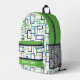 Le sac à dos Abstrait Géométrique moderne Motif Personnalisé de nom comporte un motif géométrique moderne en vert et violet sur un arrière - plan blanc avec votre nom, monogramme ou texte personnalisé. Parfait pour l'école, le sport, la salle de sport, les voyages et plus encore. Conçu par ©Evco Studio www.zazzle.com/store/evcostudio