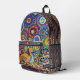 peinture rétro de cercles et de vagues avec un oiseau mignon nageant dans cette peinture hippie rétro.