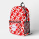 Sac à dos personnalisé avec le drapeau canadien rouge et blanc avec le mot CANADA en dessous, aux couleurs du drapeau. Le design est carrelé pour un effet artistique. Un espace blanc de carrés crasseux tient une place pour que votre nom apporte une touche personnalisée. Si vous désirez donner ceci comme un cadeau customisé, il suffit d'ajouter le nom de quelqu'un d'autre. Idéal pour les clubs, les groupes de voyage et les réunions de famille. Cool pour la fête du Canada.