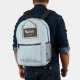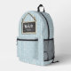 Écrivez votre propre nom ou message sur le tableau de bord suspendu en utilisant le modèle fourni de cette conception de sac à dos amusant. Si vous préférez, vous pouvez supprimer le calque de soulignement de craie en option pour laisser de la place pour un message plus long sur le tableau de bord. L'arrière - plan est une bande dessinée à la main et motif point en bleu et blanc. Recherchez ID397 pour voir d'autres options de couleur et d'autres produits avec cette conception.