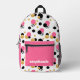 Cet élégant sac à dos rétro propose des pois abstraits en rose, noir, or et rayures. Ajoutez votre nom à personnalisé.