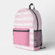 Sac à dos personnalisé et mignon, avec des rayures et des points roses et blancs à l'aquarelle. Ajoutez un monogramme, un nom ou un autre texte personnalisé partout où vous le souhaitez dans EDIT. ASSISTANCE : Pour obtenir de l'aide sur la modification ou la personnalisation de la conception, le changement de couleur, le redimensionnement, le transfert de la conception vers un autre produit ou si vous souhaitez coordonner des éléments, contactez le concepteur AVANT LA COMMANDE via l'onglet MESSAGE Conversation Zazzle ci-dessous ou envoyez un courriel à makeitaboutyoustore@gmail.com.