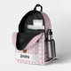Un sac à dos adorable avec une jolie patate marron caricaturale. L'arrière - plan est un mignon motif classique de en vichy rose et blanc. Un modèle sous la pomme de terre pour ajouter votre nom.