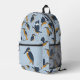 Ce sac à dos à motifs est parfait pour les amateurs d'oiseaux. Il présente des illustrations de martins-pêcheurs en bleu, doré moutarde et blanc dressées contre un arrière - plan bleu clair à motifs.