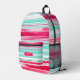 Moderne Preppy Cyan Magenta Aquarelle Motif de bande Nom personnalisé Les sacs à dos contiennent votre nom personnalisé, monogramme ou parties génitales dans une typographie de script simple sur un arrière - plan de bande d'aquarelle cyan et mageneta moderne. Parfait pour retourner à l'école, les sports, la salle de sport et plus encore. Conçu par ©Evco Studio www.zazzle.com/store/evcostudio