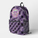 Elevate your brand with elegance. This custom backpack features an abstract fractal pattern created from a mirrored alcohol ink painting in rich shades of purple—from deep midnight plum to soft lilac. The front of the school book bag includes a designated space to upload your company’s logo, making it a sophisticated and stylish branding piece.