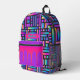Make a bold statement with this eye-catching backpack featuring a neon rainbow grid design with black outlines and a personalized name badge. The front pocket adds extra flair with a vivid pink and purple drip pattern, perfect for standing out in style. Spacious, durable, and fun—ideal for school, travel, or everyday adventures.