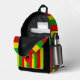 Red, yellow and green Rasta flag coloured striped backpack. There's a monogram area on the front pocket where you can add your own initial