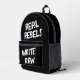Real Rebels Write Raw Backpack — cool rebel statement in black and white for daring dudes, cool gals, and chaotic creatives who turn raw handwriting into signature style!