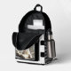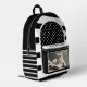 Sac à dos noir et blanc avec un design rétro rayé avec des pois et votre photo personnalisée (en option, vous pouvez également laisser le chat drôle lire un livre, si vous voulez). Beau pour l'école ou un club de lecture de livres.