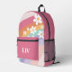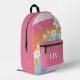 sac à dos rétro arc-en-ciel rose et violet avec nom personnalisable.