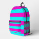 Sac à dos sur papier cousu style sac de rangement imprimé avec Hot Pink et Cyan Blue Turquoise Stripes illustration de la conception de l'oeuvre par TheFabricSeal à Zazzle.com #Zazzle Made https://www.zazzle.com/store/thefabricseal. Hot Pink symbolise la fantaisie effrayante, la sociabilité extrême et la puissante lucidité. Hot Pink est une interprétation sans complexe de la jeunesse, de l'émotion, et un choix de couleur très populaire et tendance pour les images des plateformes de médias sociaux et le réseautage. Cyan est une couleur secondaire avec des parties égales bleu et vert. Les traits de couleur donnent des sentiments et des émotions d'équilibre, de beauté, de calme, de clarté, de propreté, eau cristalline, fraîcheur, croissance, bonheur, inspirant, vivacité, positivité, rationalité, détente, revitalisation, sérénité, tranquillité, tropical et la jeunesse. Tous les produits de notre magasin peuvent être customisés avec le texte de votre choix si vous avez besoin et souhaitez faire avancer les processus de personnalisation. Imprimez un sac à dos tout-en-un et coudre style léger et durable, notre sac à dos tout-en-un personnalisé est exactement ce dont vous avez besoin. L'intérieur spacieux est idéal pour les voyages, l'école, la salle de sport ou tout besoin de rangement mobile. Caractéristiques Sangles d'épaule rembourrées réglables, deux chambres à l'intérieur pour rangement d'ordinateur portable, poches latérales en maille et un étiquette d'identification. Parfait pour l'école, le travail, les activités intérieures et extérieures, etc. Merci pour le choix, la recherche et le shopping à TheFabricSeal.